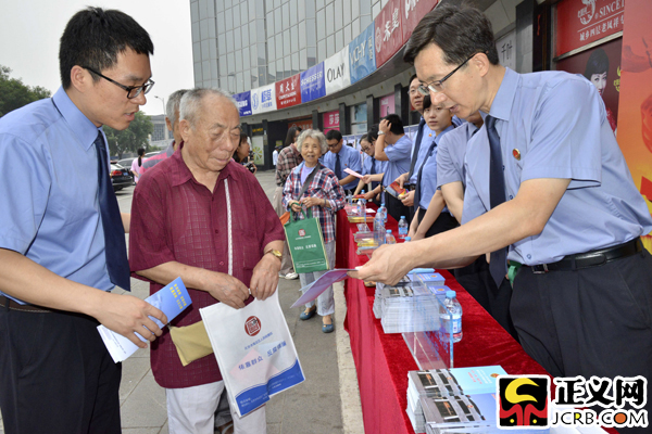 正義網(wǎng)北京6月24日電(記者 程丁 通訊員 張瑋)6月24日,第十七個“舉報宣傳周”期間,在北京市檢察院的指導(dǎo)下北京市檢察院第四分院聯(lián)合海淀區(qū)檢察院在北京城鄉(xiāng)貿(mào)易中心前廣場開展普法宣傳活動。