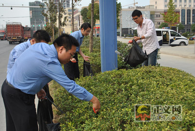 該院“學(xué)雷鋒志愿者服務(wù)隊(duì)”正在開展垃圾清掃。 王彬攝