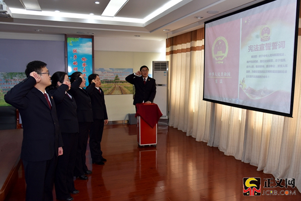 宣誓后,該院黨組成員、政治部主任要求大家強(qiáng)化人民意識(shí)和責(zé)任意識(shí),時(shí)刻維護(hù)憲法和法律的權(quán)威和尊嚴(yán),把誓言時(shí)刻銘記于心,堅(jiān)定不移為憲法規(guī)定的黨的崇高事業(yè)、憲法寫下的人民權(quán)力而不懈奮斗,堅(jiān)定不移做憲法的忠實(shí)崇尚者、嚴(yán)格遵守者、自覺運(yùn)用者和堅(jiān)定捍衛(wèi)者。
