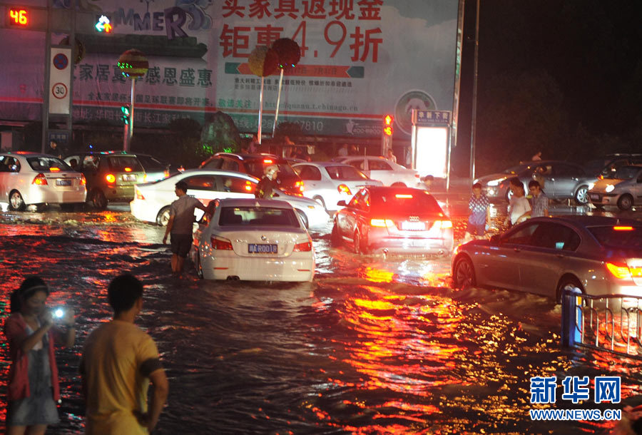 7月3日20時30分左右,成都市雙流縣華陽鎮(zhèn)一處交通路口被淹沒。新華社記者 陳燮 攝