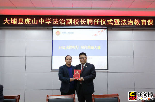 廣東省大埔縣檢察院黨組書記、檢察長張映文受聘為大埔縣虎山中學法治副校長。