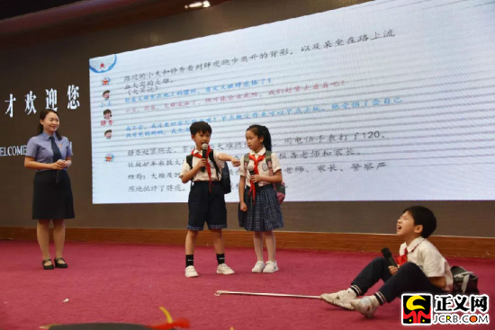 檢察官通過(guò)情景劇表演的形式引導(dǎo)學(xué)生們學(xué)習(xí)自我保護(hù)知識(shí)。