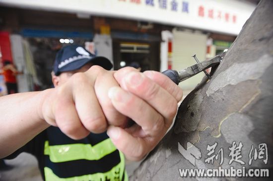 新規(guī)實(shí)施首日,開(kāi)出第一張罰單——只因在門(mén)前樹(shù)上釘了一顆釘子,商鋪老板被罰款50元。