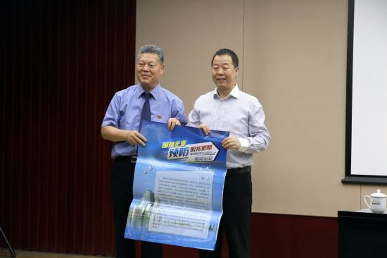 ▲廉政課結(jié)束后,西安市檢察院預(yù)防處處長凌選琪向陸港集團(tuán)贈(zèng)送預(yù)防國企干部職務(wù)犯罪法治掛圖。呂珊珊 攝