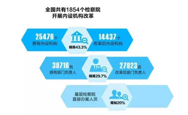 針對一些基層檢察院案多人少、機構臃腫的問題,2016年8月,最高檢與中央編辦聯(lián)合發(fā)布省以下檢察院內(nèi)設機構改革試點方案,至今年9月,全國1854個檢察院開展內(nèi)設機構改革。吉林省97個檢察院同步推進內(nèi)設機構改革。海南基層檢察院內(nèi)設機構由平均14.7個減少至7.8個。