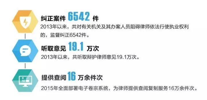 高度重視律師在促進司法公正中的重要作用。2014年12月,最高檢制定依法保障律師執(zhí)業(yè)權利的規(guī)定。2015年9月,“兩高三部”發(fā)布依法保障律師執(zhí)業(yè)權利的規(guī)定。2013年以來,全國檢察機關對有關機關及其辦案人員阻礙律師依法行使執(zhí)業(yè)權利的,監(jiān)督糾正6542件。