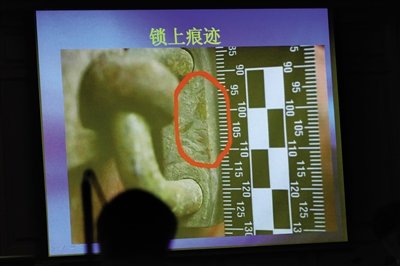 石柏魁用故宮內(nèi)的一根鐵棍,前往誠肅殿門口撬鎖,但多次努力未果后放棄,現(xiàn)場留下撬鎖的痕跡。