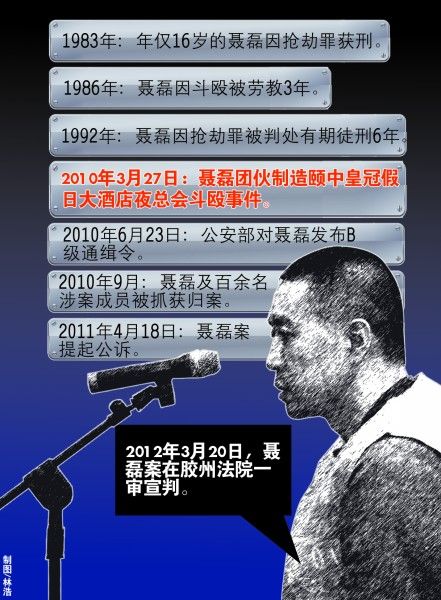 2010年9月,按照公安部、山東省公安廳有關(guān)部署,在青島市委、市政府領(lǐng)導(dǎo)下,青島市公安機(jī)關(guān)經(jīng)過(guò)深入調(diào)查、縝密偵查,一舉摧毀了以聶磊為首的涉嫌黑社會(huì)性質(zhì)犯罪組織,首犯聶磊及百余名成員被抓獲歸案。經(jīng)公安機(jī)關(guān)初步偵查,該犯罪組織涉嫌組織、領(lǐng)導(dǎo)、參加黑社會(huì)性質(zhì)組織、故意殺人、故意傷害、非法持有槍支彈藥、組織賣(mài)淫、販毒、尋釁滋事、敲詐勒索、開(kāi)設(shè)賭場(chǎng)等多項(xiàng)犯罪。