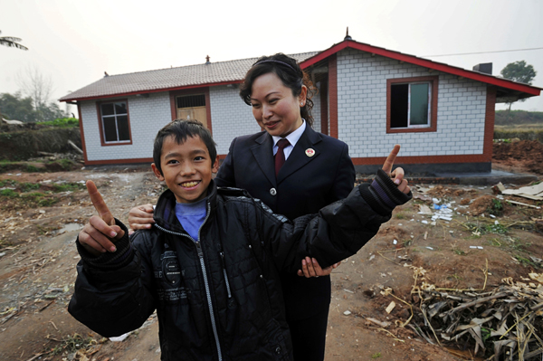 孤兒小周和其終身未婚的叔父生活在一起,因為家境貧寒,輟學在家。檢察院知道后,不僅幫助其回到學校,還經常帶著生活、學習用品去看望他。去年的暴雨讓他的家成為的危房,重慶市榮昌縣 檢察院幫助其籌集到3.5萬元修建了被當地群眾將該房稱為"幸福小紅屋"的新屋。當有人問他現在幸福嗎?站在"幸福小紅屋"前和檢察官在一起的小周,高興地比劃著回答:“幸福這么大”。