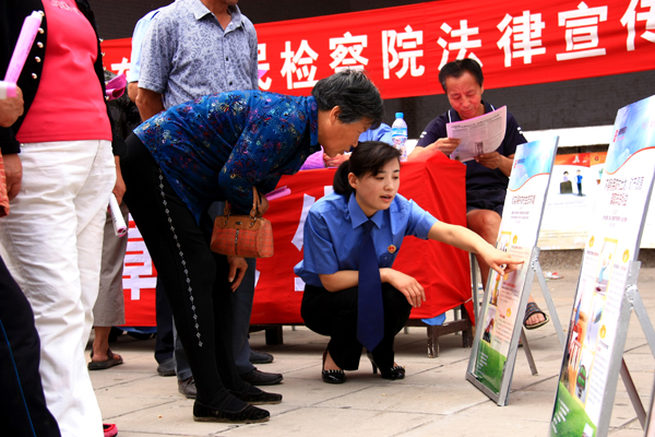 河北省張家口市橋東區(qū)檢察院近日開展了以“懲防并舉,保障民生”為主題的法治宣傳活動,就政府征地、新型農(nóng)村合作醫(yī)療、公共設施建設、政府相關農(nóng)村各項補貼等方面可能涉及到的職務犯罪進行舉報宣傳,并為群眾提供法律咨詢。