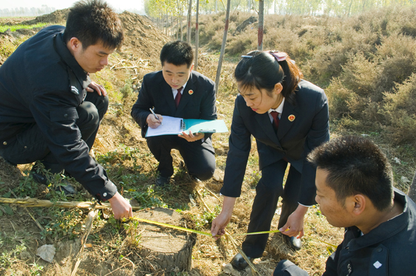 10月30日,涿州市檢察院公訴檢察官會同公安民警在該市大豹子村北路旁測量被濫伐的樹木。今年以來,河北省涿州市先后發(fā)生兩起未經(jīng)林業(yè)部門許可濫伐樹木共計1032棵141.67立方米,涿州市檢察官及時介入現(xiàn)場固定證據(jù),對涉嫌濫伐樹木的五人先后依法提起了公訴,有力的打擊了犯罪,促進(jìn)了城鄉(xiāng)綠化亮化建設(shè)。