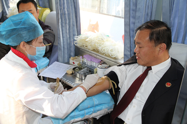 山東省博興縣檢察院10名干警來到位于縣城中心的流動采血車,在進行現(xiàn)場咨詢、問卷調(diào)查和血樣測試后進行無償獻血,該院檢察長帶頭捐獻血液,干警們紛紛挽起手臂,奉獻愛心、回報社會,一個小時內(nèi)共采集鮮血2000毫升。干警們用實際行動踐行了一名司法工作者應有的社會責任,體現(xiàn)了檢察干警積極參與和服務社會公益事業(yè)的志愿精神和高尚情操。