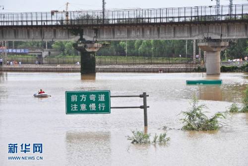 7月22日,一輛排水車?吭诜e水嚴(yán)重的京港澳高速南崗?fù)荻巍?