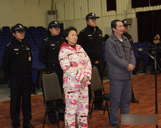 12月7日,經(jīng)最高人民法院核準(zhǔn),重慶賣淫集團(tuán)女“黑老大”王紫綺(前左)在當(dāng)?shù)乇粓?zhí)行死刑。圖為王紫綺7日在重慶五中院大審判庭。中新社發(fā)陳銅 攝