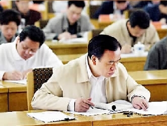 2003年,時(shí)任浙江省省長(zhǎng)呂祖善參加《行政許可法》考試。