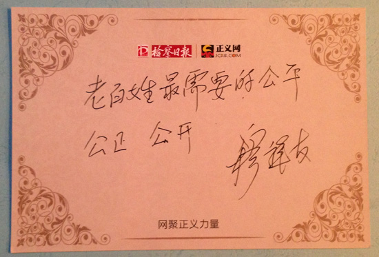 穆祥友代表寄語(yǔ)檢察日?qǐng)?bào)社正義網(wǎng):老百姓最需要的公平公正公開
