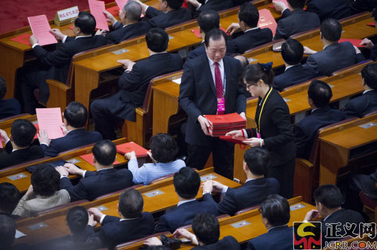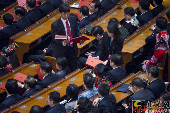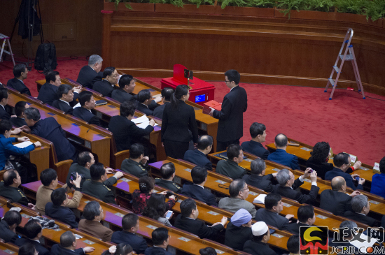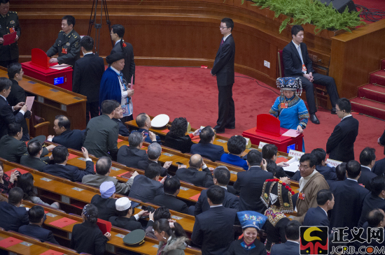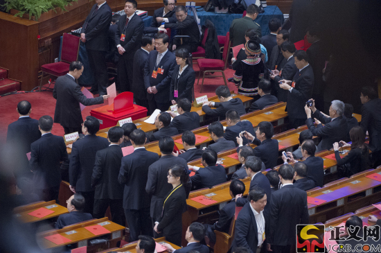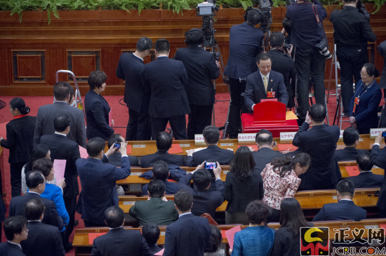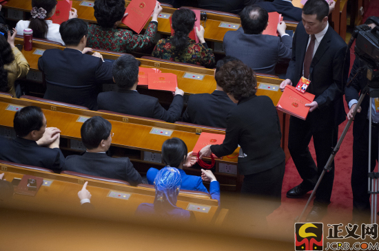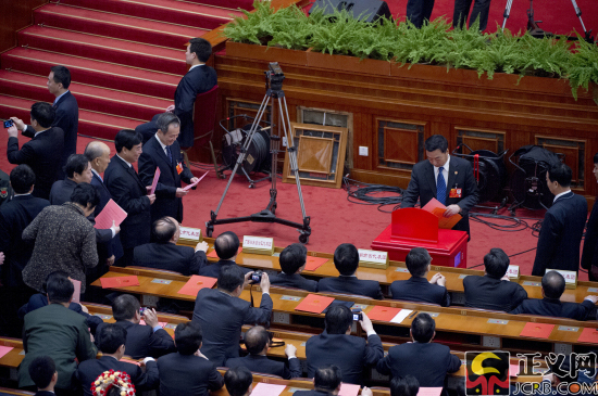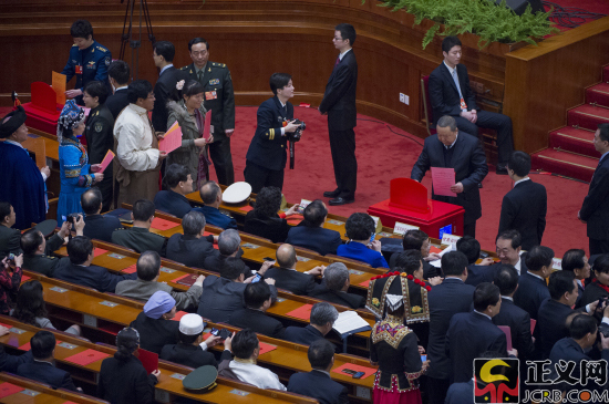 3月15日上午,十二屆全國人大一次會(huì)議在人民大會(huì)堂舉行第五次全體會(huì)議。決定中華人民共和國國務(wù)院總理的人選:決定中華人民共和國中央軍事委員會(huì)副主席、委員的人選;選舉最高人民法院院長;選舉最高人民檢察院檢察長。正義網(wǎng)記者程丁 攝