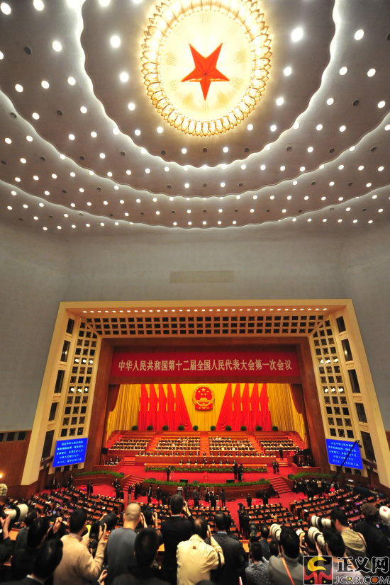 3月16日下午,十二屆全國(guó)人民代表大會(huì)第一次會(huì)議在人民大會(huì)堂舉行第六次全體會(huì)議,決定國(guó)務(wù)院副總理、國(guó)務(wù)委員、各部部長(zhǎng)、各委員會(huì)主任、中國(guó)人民銀行行長(zhǎng)、審計(jì)長(zhǎng)、秘書長(zhǎng)的人選;表決第十二屆全國(guó)人民代表大會(huì)各專門委員會(huì)主任委員、副主任委員、委員名單草案。正義網(wǎng)記者程丁 攝