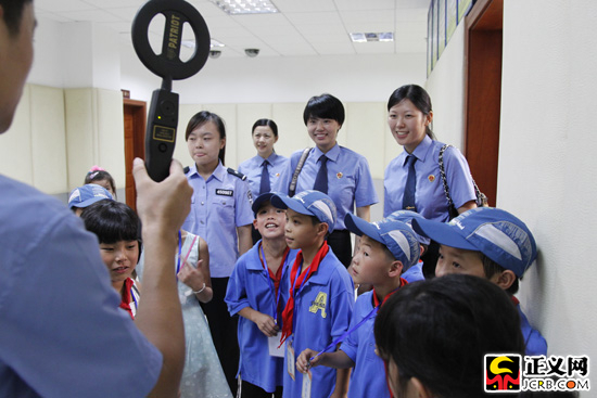 檢察干警在向小朋友們演示金屬探測(cè)器。黃輝攝