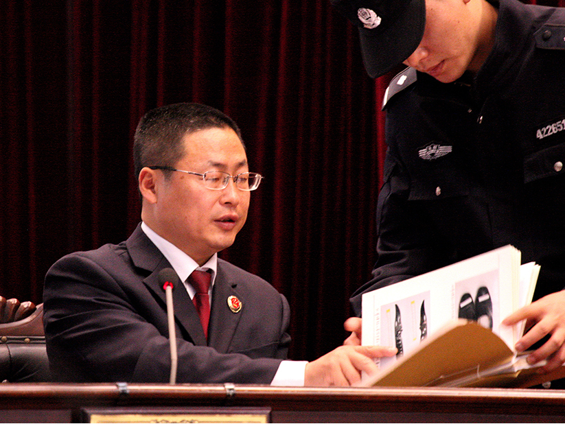 9點30分,法院準時開庭。持續(xù)兩小時的庭審中,被告人童俊中對自己的瘋狂行為毫無懺悔之意,多次辯稱殺人并非出于“故意”。公訴人付建中宣讀起訴書,反駁被告與律師的辯護意見,發(fā)表公訴詞,聲音洪亮、思路清晰,邏輯縝密,觀點明確,當庭建議對被告人童俊中判處死刑。劉明 攝