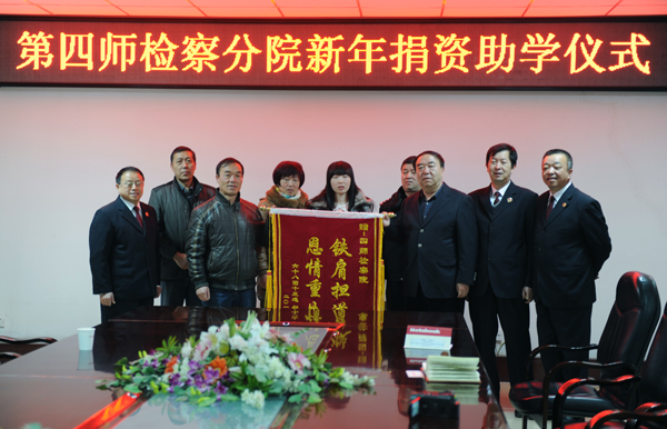 2013年,新疆兵團(tuán)生產(chǎn)建設(shè)兵團(tuán)人民檢察院第四師分院黨支部在開(kāi)展黨的群眾路線(xiàn)教育實(shí)踐活動(dòng)中,通過(guò)走基層,了解到第四師68團(tuán)13連勾永江家因妻子疾病,造成兒女勾美妮上大學(xué)困難,院支部在院黨組支持下,通過(guò)社會(huì)力量籌集資金2萬(wàn)元以幫助勾美妮完成學(xué)業(yè)。2015年2月4日勾通過(guò)所在連隊(duì),與父母到分院來(lái)感謝檢察院叔叔阿姨們的幫助,并贈(zèng)送“鐵肩擔(dān)道義 恩情重如山”的錦旗以表真誠(chéng)的謝意。院黨組書(shū)記、檢察長(zhǎng)王玉杰同志借此再次向勾美妮捐助第三學(xué)年的學(xué)習(xí)費(fèi)用5000元。勾表示一定要好好學(xué)習(xí),絕不辜負(fù)檢察分院領(lǐng)導(dǎo)和同志們的關(guān)懷,學(xué)成后,回來(lái)為家鄉(xiāng)建設(shè)做出自己的努力。郭建忠 攝