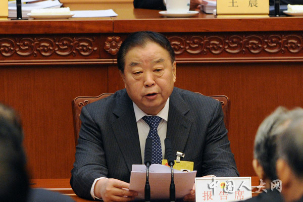 10月27日上午,十二屆全國人大常委會第十一次會議舉行第一次全體會議,全國人大法律委員會主任委員喬曉陽作關(guān)于行政訴訟法修正案草案審議結(jié)果的報(bào)告。中國人大網(wǎng) 李杰 攝