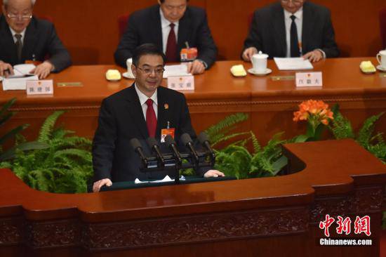 3月12日上午9時,第十二屆全國人民代表大會第三次會議在人民大會堂舉行第三次全體會議,聽取最高人民法院院長周強關于最高人民法院工作的報告,聽取最高人民檢察院檢察長曹建明關于最高人民檢察院工作的報告。圖為周強作關于最高人民法院的工作報告。中新社記者 金碩 攝