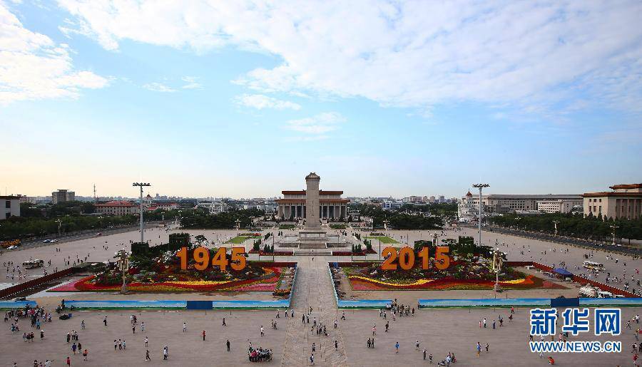 天安門(mén)廣場(chǎng)紀(jì)念抗戰(zhàn)勝利70周年花卉布置完畢