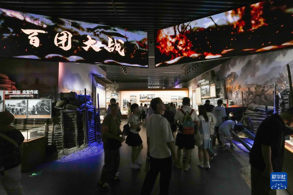 多版本的《論持久戰(zhàn)》;抗日根據(jù)地群眾為部隊(duì)縫制的草鞋;燈光、布景、音效再現(xiàn)氣勢磅礴的百團(tuán)大戰(zhàn)……一件件珍貴的文物和影像,生動再現(xiàn)烽火歲月中國共產(chǎn)黨秉持民族大義、堅守抗戰(zhàn)信念、凝聚人民力量的歷史畫卷。