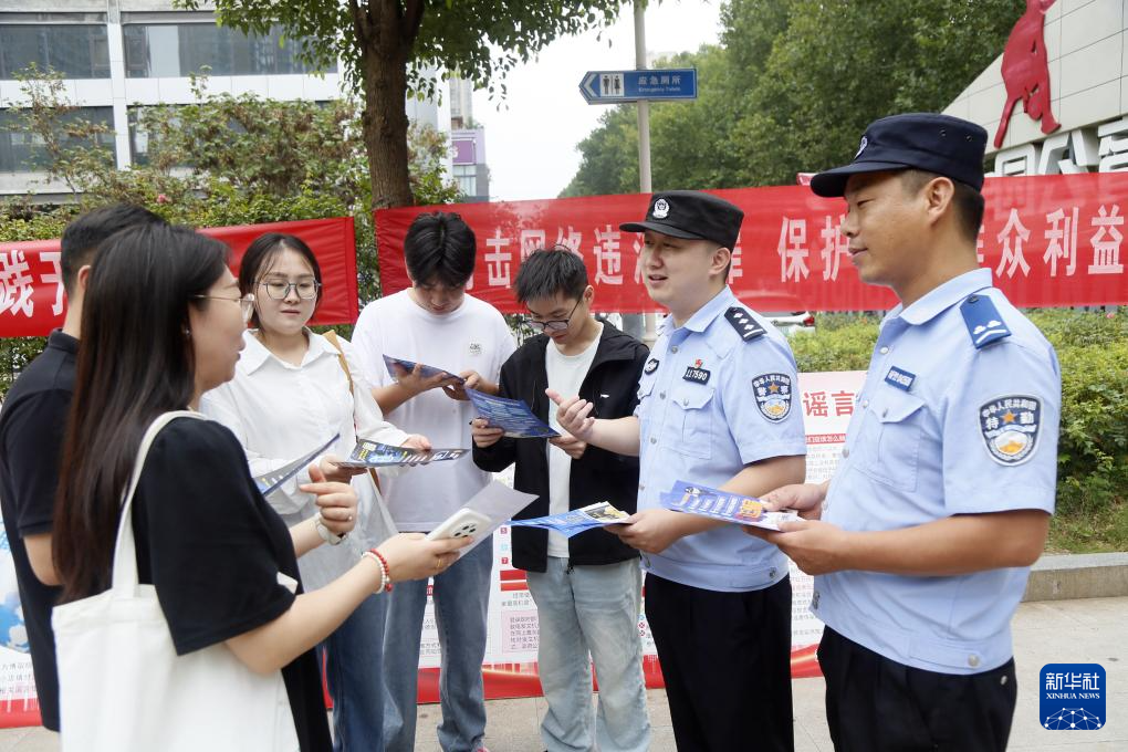 9月15日,河南省洛陽市汝陽縣公安局網(wǎng)絡安全保衛(wèi)大隊民輔警在文化廣場為居民講解網(wǎng)絡安全知識。