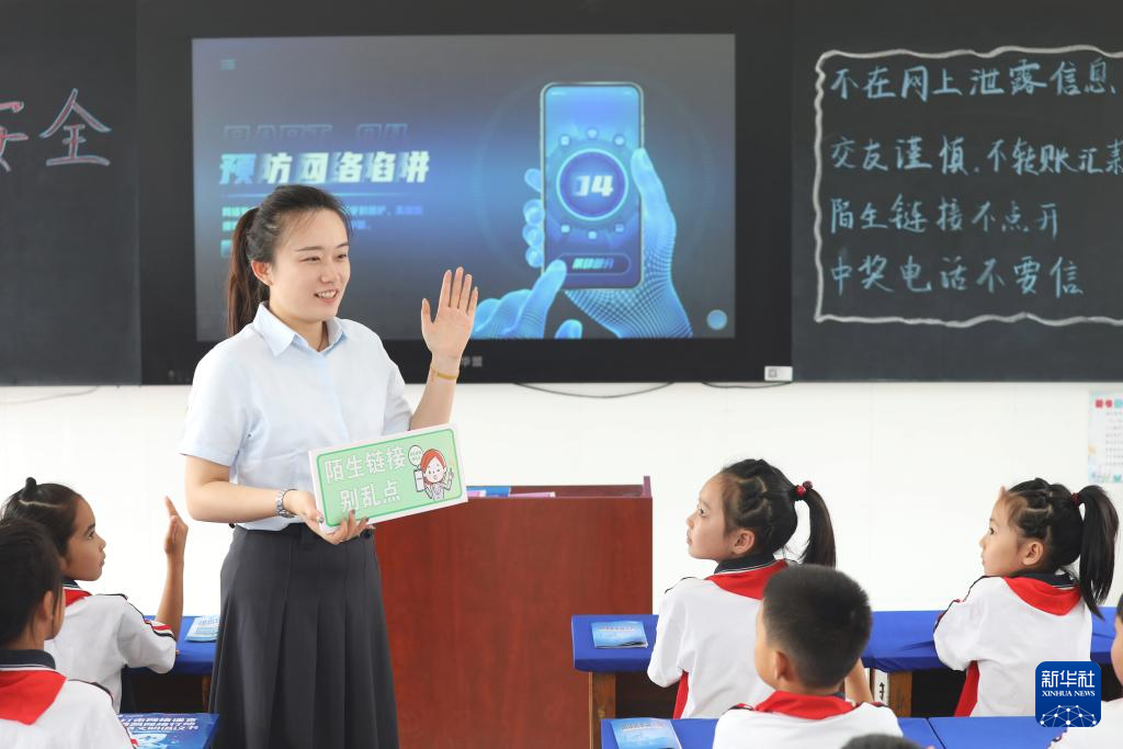 9月15日,河北省唐山市豐潤區(qū)泉河頭小學老師在給學生講解網(wǎng)絡安全知識。