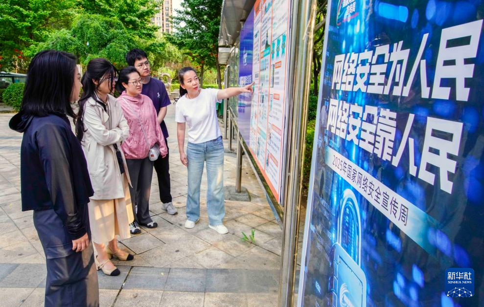 9月15日,河北省遵化市華明路街道依水現(xiàn)代城社區(qū)的居民在觀看網(wǎng)絡安全宣傳欄。