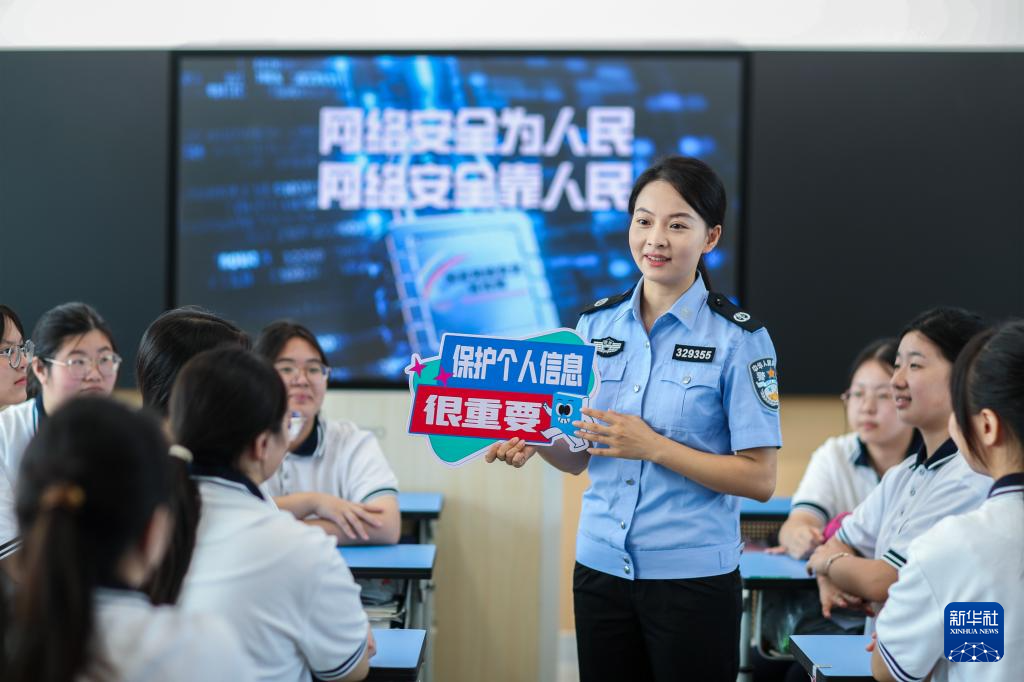 9月15日,浙江省舟山市岱山縣公安局民警與轄區(qū)高亭中學學生進行網(wǎng)絡安全知識競答互動。