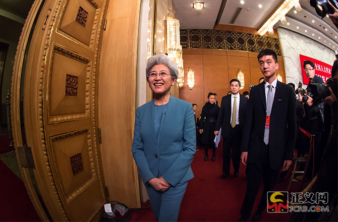 3月4日,十二屆全國人大四次會議在人民大會堂舉行新聞發(fā)布會,大會發(fā)言人傅瑩回答中外記者的提問。本次發(fā)布會共有18名中外記者提問,其中11位記者提問涉及法治話題,占提問總數(shù)的61%。民法典的編纂工作、慈善法、推進(jìn)全面依法治國、全國人大審議境外非政府組織管理法草案、全國人大立法、反腐敗、《中華人民共和國反家庭暴力法》、稅收法、涉黃涉毒或者微博禁言的演員、政府依法行政、《大氣污染防治法》等。正義網(wǎng)記者程丁攝