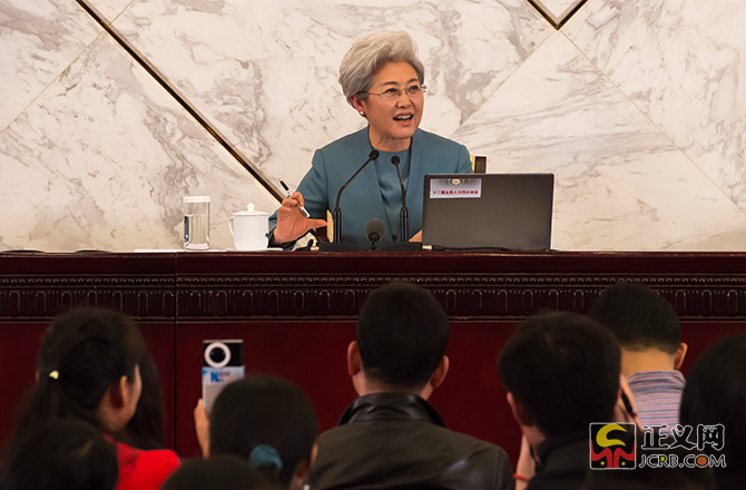 3月4日,十二屆全國人大四次會議在人民大會堂舉行新聞發(fā)布會,大會發(fā)言人傅瑩回答中外記者的提問。本次發(fā)布會共有18名中外記者提問,其中11位記者提問涉及法治話題,占提問總數的61%。民法典的編纂工作、慈善法、推進全面依法治國、全國人大審議境外非政府組織管理法草案、全國人大立法、反腐敗、《中華人民共和國反家庭暴力法》、稅收法、涉黃涉毒或者微博禁言的演員、政府依法行政、《大氣污染防治法》等。正義網記者程丁攝