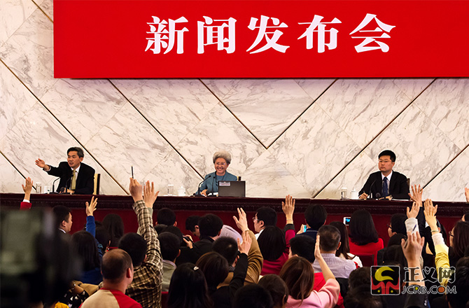 3月4日,十二屆全國(guó)人大四次會(huì)議在人民大會(huì)堂舉行新聞發(fā)布會(huì),大會(huì)發(fā)言人傅瑩回答中外記者的提問(wèn)。本次發(fā)布會(huì)共有18名中外記者提問(wèn),其中11位記者提問(wèn)涉及法治話題,占提問(wèn)總數(shù)的61%。民法典的編纂工作、慈善法、推進(jìn)全面依法治國(guó)、全國(guó)人大審議境外非政府組織管理法草案、全國(guó)人大立法、反腐敗、《中華人民共和國(guó)反家庭暴力法》、稅收法、涉黃涉毒或者微博禁言的演員、政府依法行政、《大氣污染防治法》等。正義網(wǎng)記者程丁攝