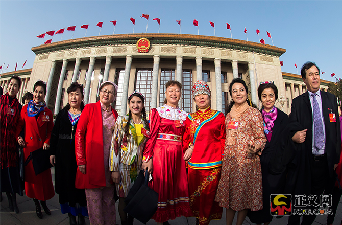 3月5日上午,第十二屆全國人民代表大會第四次會議在人民大會堂開幕,國務(wù)院總理李克強(qiáng)作政府工作報(bào)告,審查計(jì)劃報(bào)告和預(yù)算報(bào)告。新疆代表團(tuán)代表著盛裝出席會議。正義網(wǎng)記者程丁攝