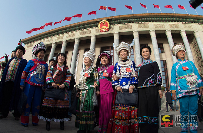 3月5日上午,第十二屆全國人民代表大會第四次會議在人民大會堂開幕,國務(wù)院總理李克強作政府工作報告,審查計劃報告和預(yù)算報告。貴州代表團代表著盛裝出席會議。正義網(wǎng)記者程丁攝