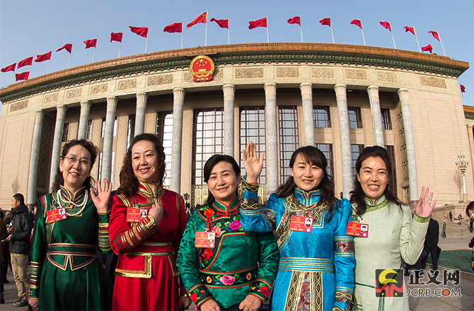 3月5日上午,第十二屆全國人民代表大會第四次會議在人民大會堂開幕,國務(wù)院總理李克強(qiáng)作政府工作報告,審查計劃報告和預(yù)算報告。內(nèi)蒙古代表團(tuán)代表著盛裝出席會議。正義網(wǎng)記者程丁攝