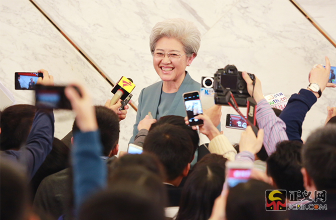 十二屆全國人大四次會議于3月4日(星期五)上午11時在人民大會堂新聞發(fā)布廳舉行新聞發(fā)布會,大會發(fā)言人傅瑩就大會議程和人大工作相關(guān)的問題回答中外記者的提問。正義網(wǎng)記者張哲攝