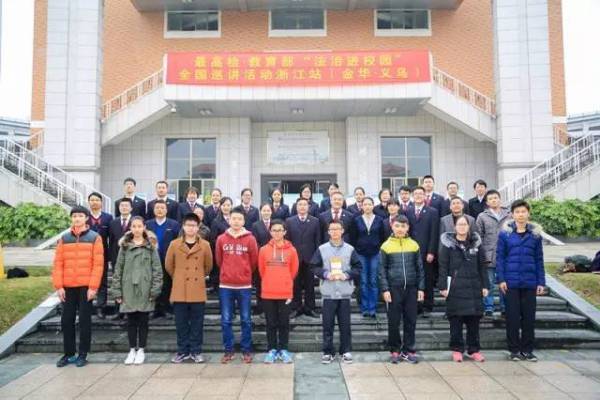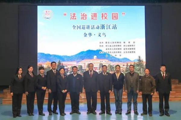 義烏中學(xué)校長朱躍望致辭,金華市人民檢察院郭土華副檢察長及麗水市檢察院、義烏市檢察院、義烏市教育局、團(tuán)市委、關(guān)工委等單位領(lǐng)導(dǎo)、部門負(fù)責(zé)人來到現(xiàn)場