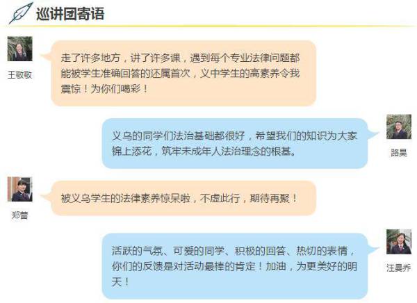 一堂精彩的法治課,讓同學(xué)們受益匪淺。衷心希望同學(xué)們以本次巡講活動(dòng)為契機(jī),增強(qiáng)用法律保護(hù)自己的能力,真正認(rèn)識(shí)到法治對于每個(gè)人的重要意義,成為法治的忠實(shí)崇尚者、自覺遵守者和堅(jiān)定捍衛(wèi)者!