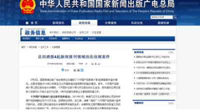 9月28日,國家新聞出版廣電總局再次公開通報一批違法違規(guī)案件的查處情況,共有15家媒體和17名采編人員被處罰和處理,分別是:《揚子晚報》未經(jīng)核實刊發(fā)虛假新聞《男子搶20張火車票送女友 岳母大悅聘禮減半》,江蘇省新聞出版廣電局依法對《揚子晚報》作出警告、罰款1萬元的行政處罰;湖北《武漢晚報》《荊州晚報》,江西《贛州晚報》,內(nèi)蒙古《包頭晚報》《內(nèi)蒙古晨報》《北方新報》《紅山晚報》未經(jīng)核實轉(zhuǎn)載“李玉剛臺北出家”的假消息,新聞出版廣電行政部門依法對上述7家報紙分別作出警告、罰款等行政處罰和處理;《南方都市報》原記者王星根據(jù)傳聞編寫了《河南平頂山女官員3個月前自殺官方至今未通報》一文,在微信公眾號“深℃”發(fā)布,王星被報社勸退,5年內(nèi)禁止從事新聞采編工作;《華夏時報》主辦的華夏網(wǎng)刊發(fā)虛假新聞《退休機務副總落馬南航三大重要部門全部淪陷》,新聞出版廣電總局依法給予華夏時報社警告、罰款的行政處罰;《南方都市報》所辦南都網(wǎng)、新聞客戶端及法人微博發(fā)布的假新聞《裸女跳河,救人者遭冷遇》,被海南《南國都市報》、江蘇《靖江日報》、山東《生活日報》分別轉(zhuǎn)載,新聞出版廣電行政部門依法分別對這4家報紙作出警告、罰款等行政處罰;湖南廣播電視臺都市頻道播出的假新聞《長沙股民170萬四倍融資全倉一股兩跌停賠光跳樓》,《瀟湘晨報》未經(jīng)核實進行轉(zhuǎn)載,湖南省新聞出版廣電局對湖南廣播電視臺和《瀟湘晨報》分別作出處罰。