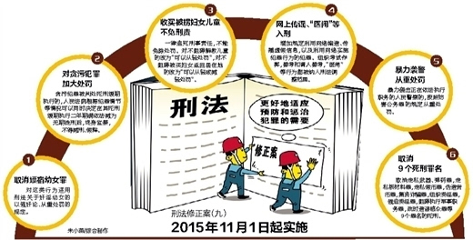 法律是治國之重器,刑法尤為重要。刑法作為支撐我國社會(huì)主義法律體系架構(gòu)的基本法律之一,必然要適應(yīng)經(jīng)濟(jì)社會(huì)發(fā)展的新形勢、人民群眾對于公平正義的新期待,適時(shí)加以修改完善。刑法修正案九的出臺(tái),解決了司法實(shí)踐中迫切需要解決的一些難題,與時(shí)俱進(jìn)地增加了一些新罪名,調(diào)整了一些罪名的刑罰,使刑法更加符合實(shí)際,更具有科學(xué)性、前瞻性和可操作性,能夠更精準(zhǔn)地懲治犯罪和預(yù)防犯罪,更加有效地維護(hù)國家安全、社會(huì)秩序和人民權(quán)益。