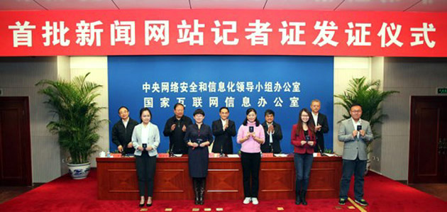 2015年11月6日,國(guó)家互聯(lián)網(wǎng)信息辦公室、國(guó)家新聞出版廣電總局在北京聯(lián)合舉行首批新聞網(wǎng)站記者證發(fā)證儀式,為14家中央主要新聞網(wǎng)站首批594名記者發(fā)放新聞?dòng)浾咦C。