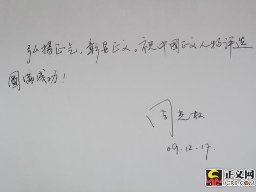 寄語:弘揚(yáng)正氣,彰顯正義,祝中國正義人物評選圓滿成功!