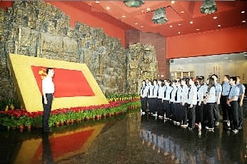檢察干警在中國(guó)人民抗日戰(zhàn)爭(zhēng)紀(jì)念館重溫入黨誓詞。