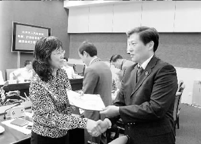 2011年5月17日,北京市檢察院民事、行政檢察專家咨詢委員會正式成立,北京市檢察院檢察長慕平(右)向35位該院聘請的專家咨詢委員會委員頒發(fā)了聘書。 本報記者趙曉星 通訊員張旭攝