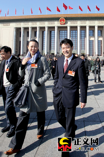 3月4日上午,十一屆全國人大四次會議召開預備會。為中國女排發(fā)展作出貢獻的陳忠和代表與馮坤代表一起走出會場。傅偉/攝