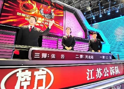 2011年9月14日,首屆全國公訴人與律師電視論辯大賽在北京舉行。圖為江蘇公訴隊(duì)正在陳詞激辯。本報(bào)記者程丁攝